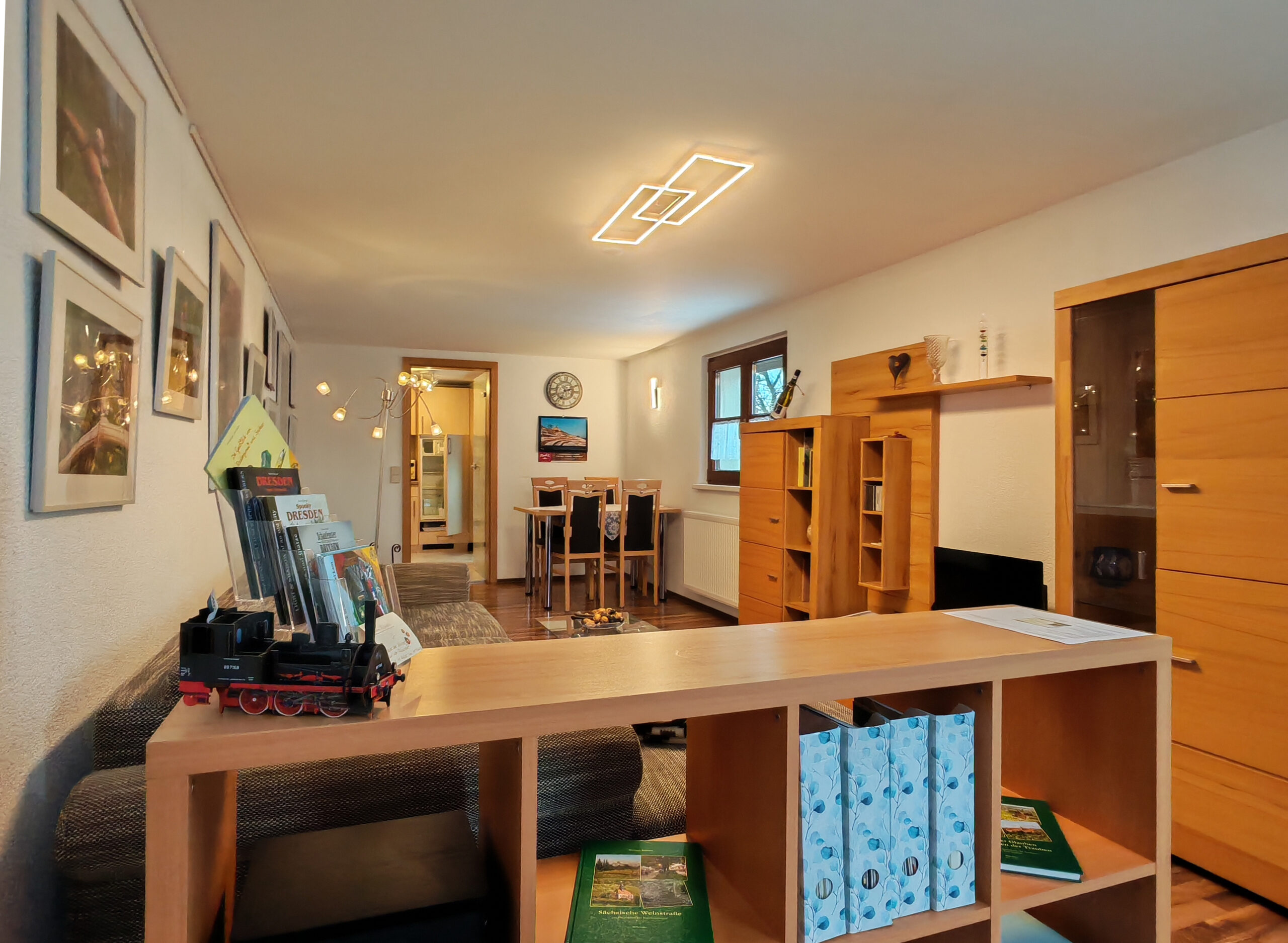 In der ganzen Wohnung sind kleine Aufmerksamkeiten zu entdecken. So schmücken Blumen bei Anreise die Wohnung, auch Gästehausschuhe für die Feriengäste liegen bereit, ebenso Bücher. Außerdem können sich die Gäste selbstgemachte Marmelade und Wein von der Sächsischen Weinstraße schmecken lassen.
